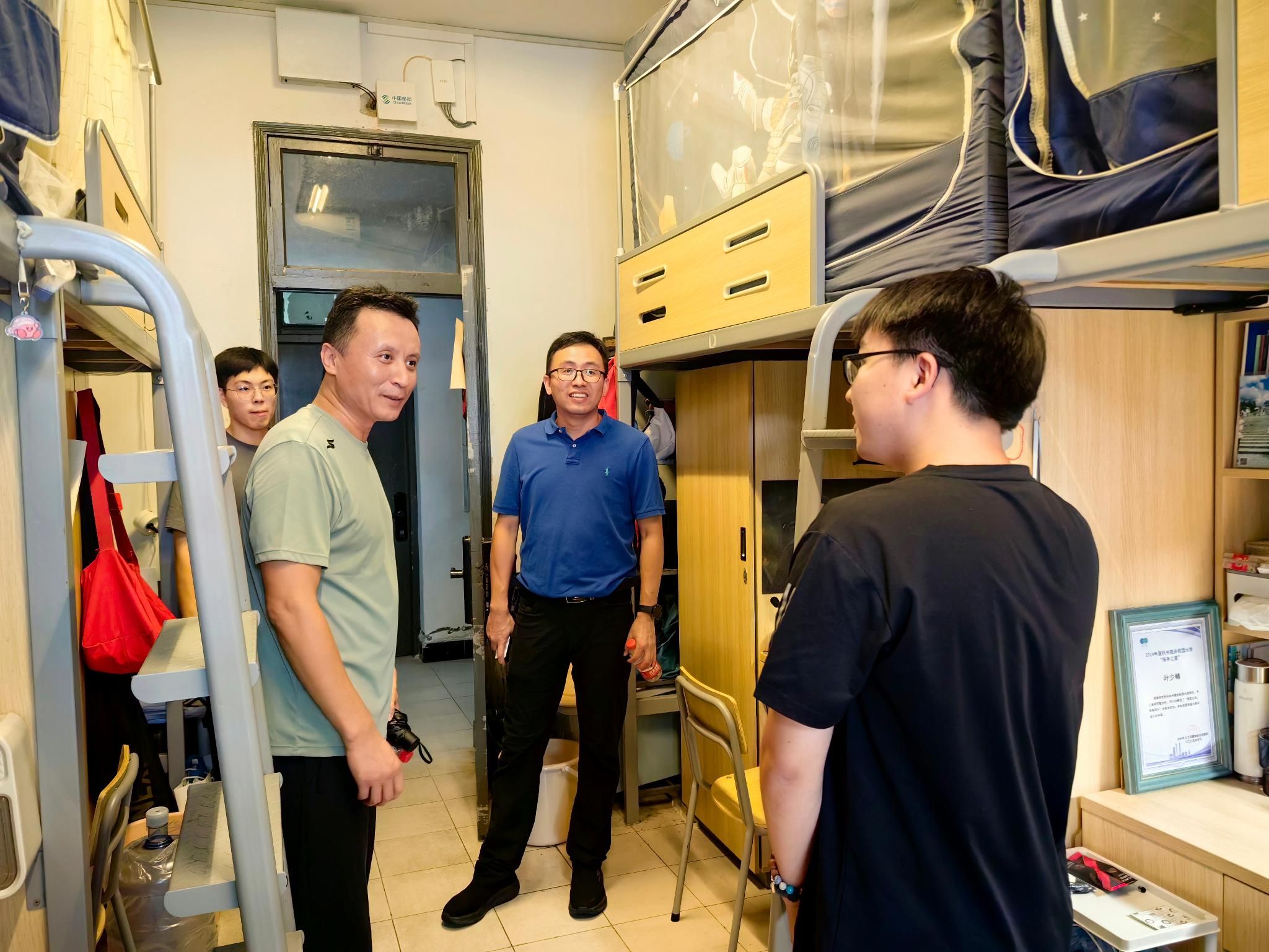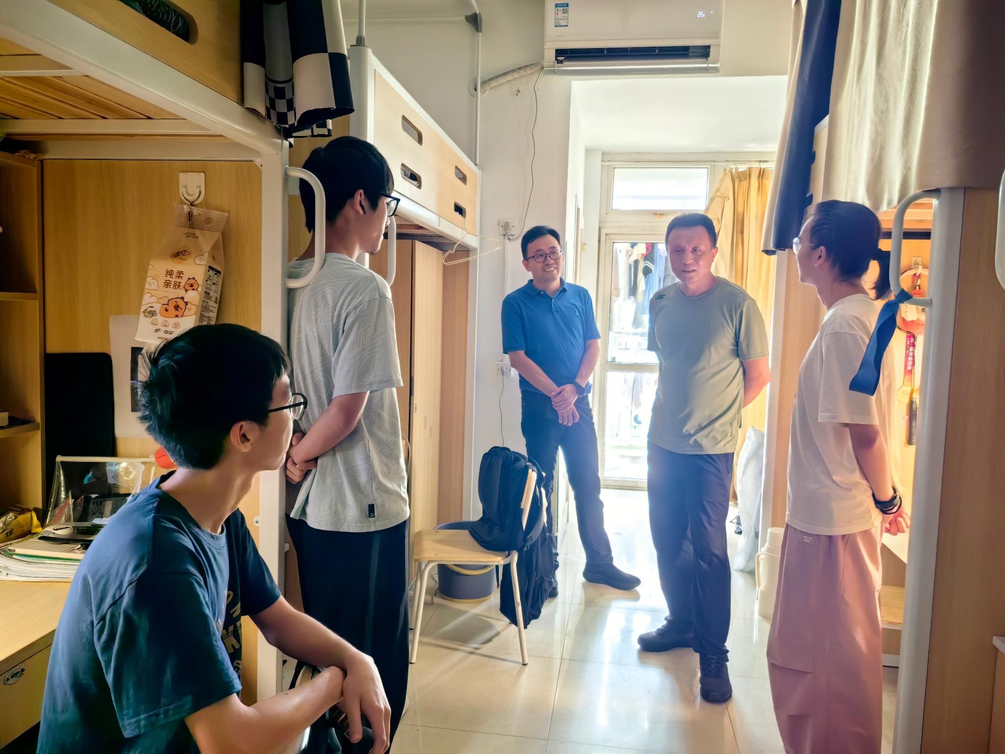 7月28日中午,院党委书记朱明辉、党委副书记方结红在辅导员陪同下,走访慰问9幢南楼和4幢东楼留校学生。走访中,领导们与同学们亲切交流,细致询问考研复习、实习工作、竞赛备赛进展,并重点进行了暑期安全叮嘱,提醒同学们要注意防暑降温与消防安全,台风天气减少不必要外出,做好个人防护,遇困难第一时间联系辅导员。学院领导要求同学们务必时刻绷紧安全弦,将人身安全放在首位。同学们对学院的关怀倍感温暖,表示将强化安全意识,在确保安全的前提下做好实习实践工作。