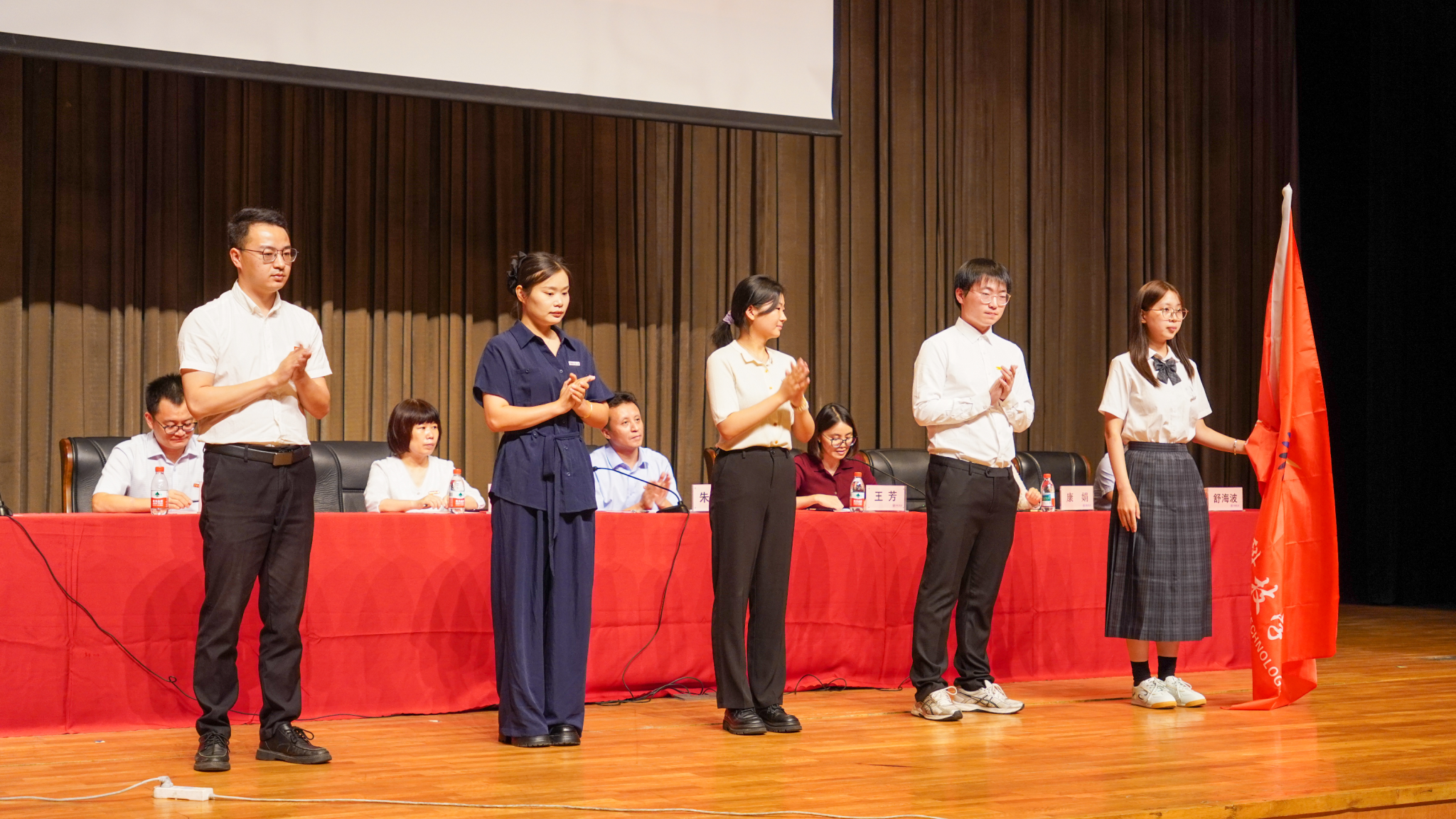 在庄重的院旗传递仪式上,教师代表、老生代表将象征着责任与使命的院旗郑重交到新生代表手中,寓意薪火相传,继往开来。伴随全体师生热烈的掌声,2025级新生的逐梦之旅由此正式启航。