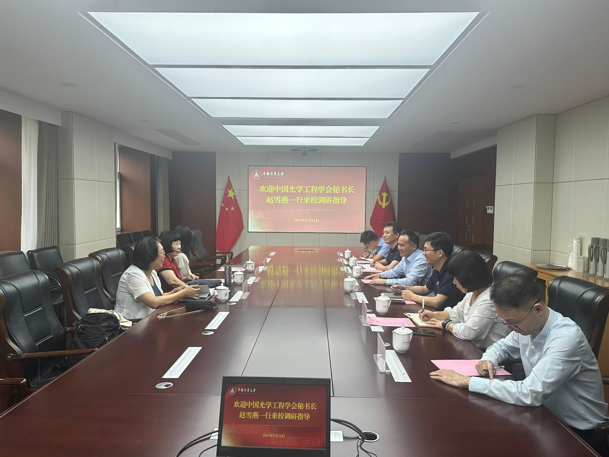 9月21日上午,中国光学工程学会秘书长赵雪燕、学术交流部部长蔡方方,北京航空航天大学“空天宽谱段探测与智能感知”工信部重点实验室主任赵慧洁等一行来校调研交流。校党委副书记、副校长(主持行政日常工作)戴道锌热情接待了客人并主持座谈会。办公室、光电学院相关负责人和骨干教师参加。