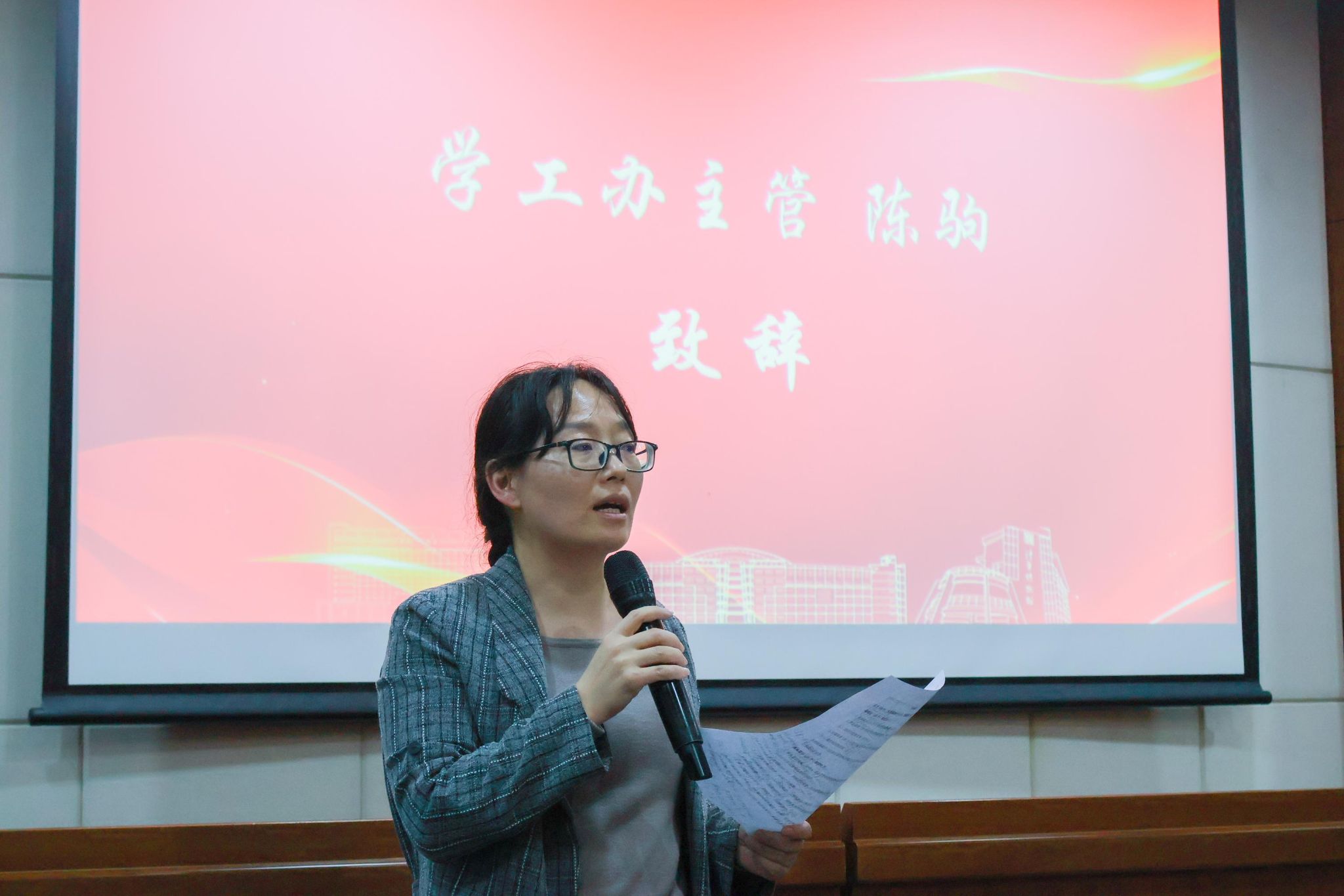 随后,学工办主管陈驹对此次大会进行点评。她聚焦于本次评比活动主题,强调学风建设了重要性,优良的班级学风对集体与个人的积极作用不可忽视,如何建设优良的学风是每个班干部与班级成员的职责所在。同时陈驹明确指出本次活动中班级展示存在的问题,并予以建议和鼓励,也对2025级新生班委们提出殷切的期望。