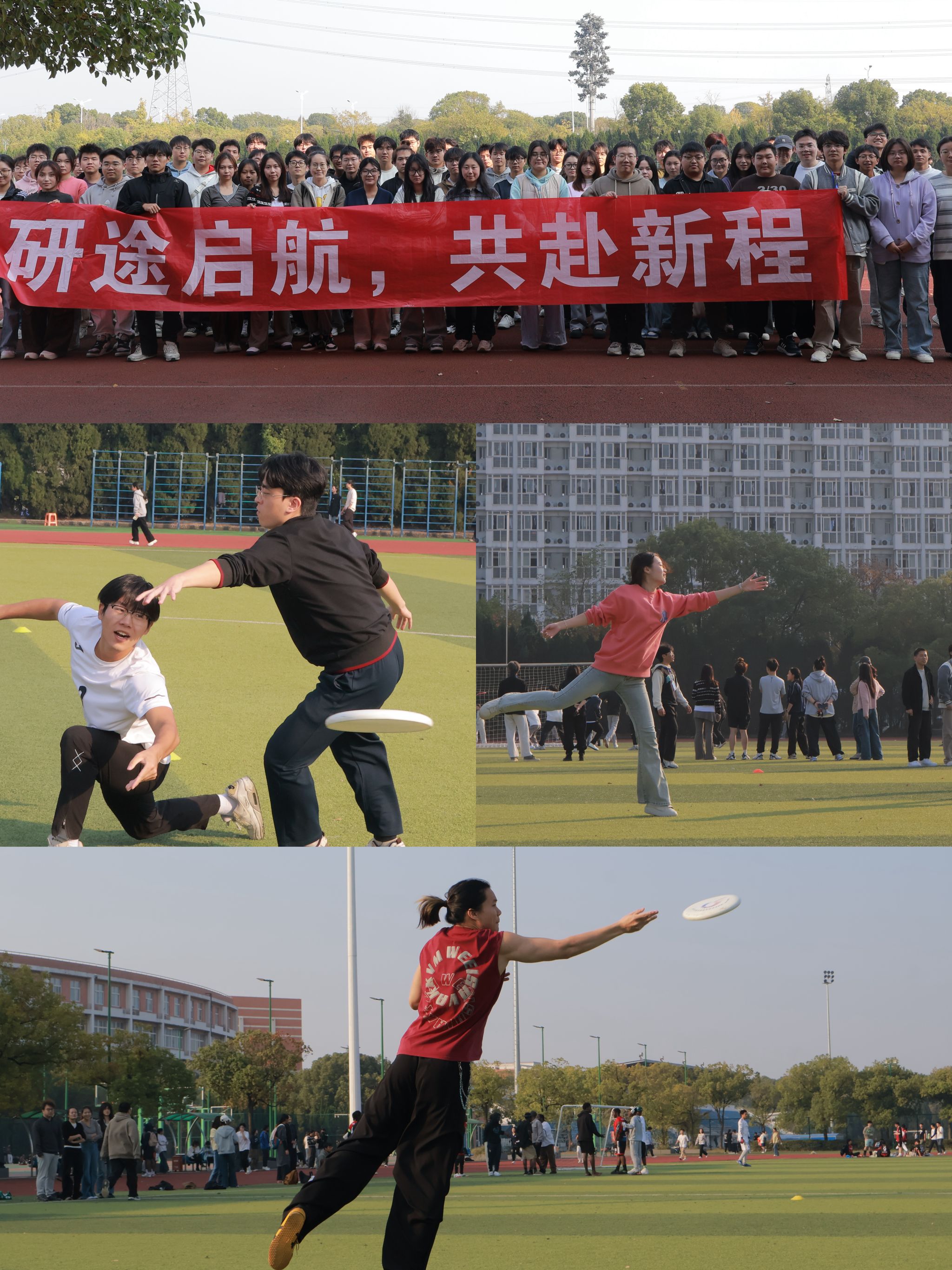 绿茵操场上的飞盘比赛作为新兴项目,吸引了众多研究生参与,共计百余人参与。各队由10人组成,不分年级、不分性别混合组队。比赛中,队员们通过精准的传接配合向前推进,当进攻方成功在对方得分区接住飞盘时,全队欢呼雀跃;当飞盘被拦截时,双方立即转换攻防。这项运动更加凝聚了同学们的团队精神。